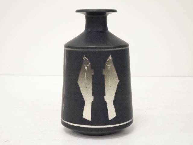 【陶芸・陶器】勝造 黒石並釉花入(共箱)【送料無料】