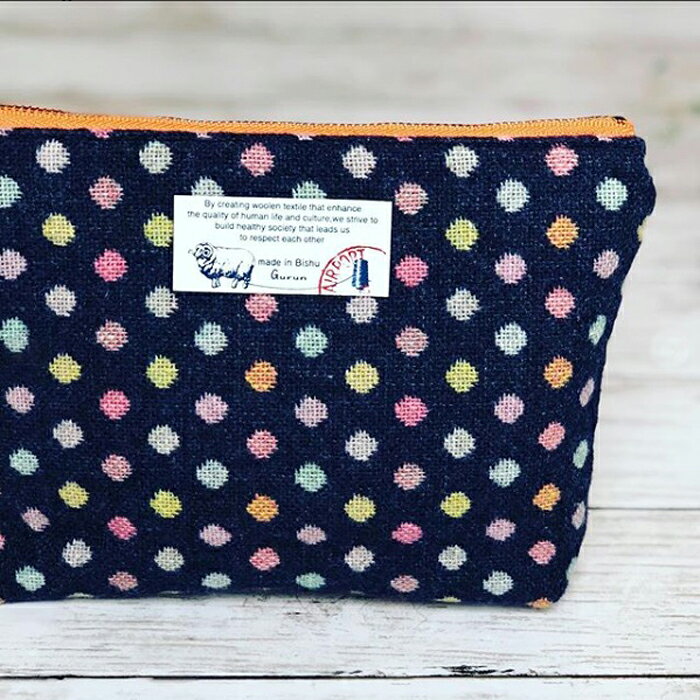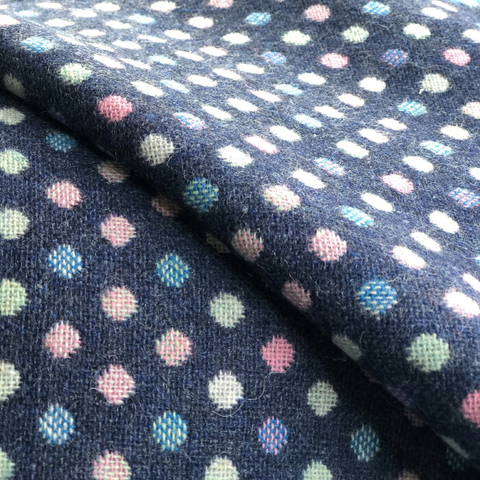【尾州ウール ブルードット】 50cm〜 カットクロス 生地 温かい ウール 国産 尾州 ハンドメイド 手作り 縫製 小物作り 羊 素材 バッグ 服 財布 ストール コート 膝掛け 羽織 クッション ジャケット