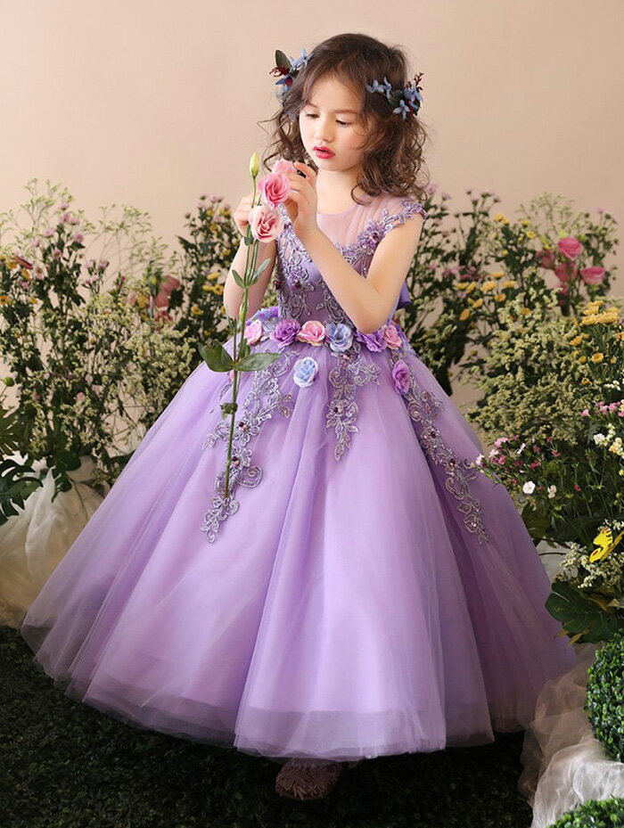 子供ドレス フラワーガール パープル ロング フォーマルドレス 110 120 130 140 150 160 七五三 女児 チュールスカート イベント パーティードレス 結婚式 発表会 演奏会音楽会