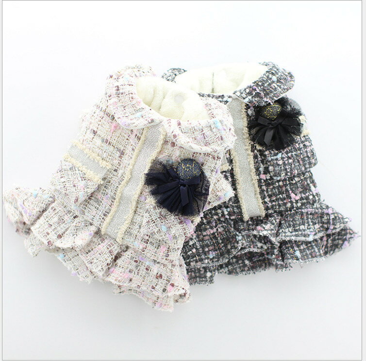 ペット 犬 犬服 ワンピース 暖かい 秋冬フルツイードワンピース 新商品!ツイードが上品で可愛いデザインです。